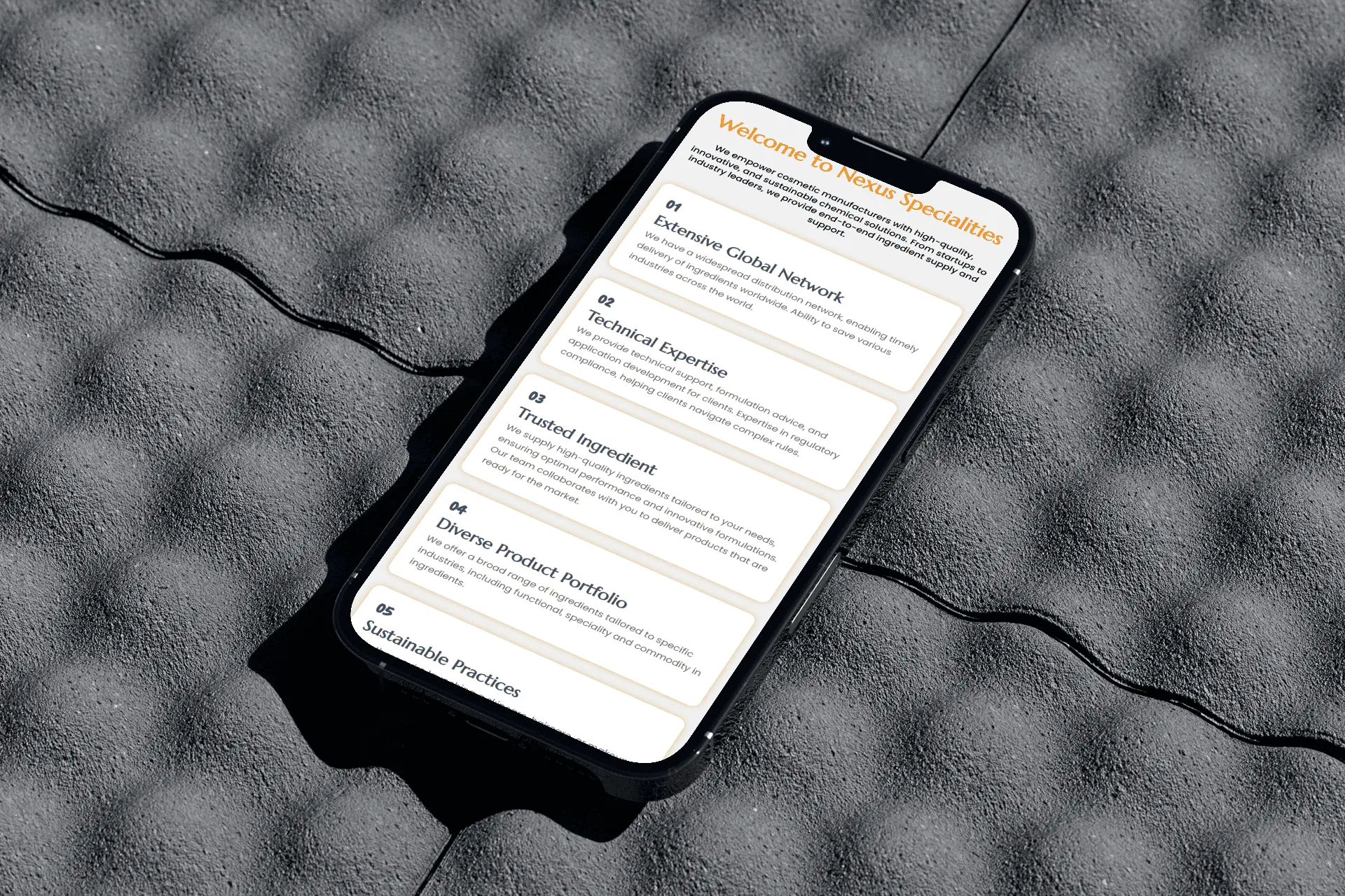 Nexus Specialities, a trusted supplier of cosmetic ingredients, needed a website that spoke to their core audience—experienced professionals who prioritise clarity and reliability over flashy design. Our goal was to create a digital presence that is straightforward, informative, and easy to navigate, reflecting Nexus’s expertise and trustworthiness in the industry.